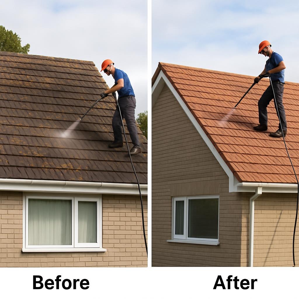 Mit modernster Ausrüstung entfernt unser Reinigungsprozess effizient Schmutz und Moos und verlängert die Lebensdauer Ihres Daches.